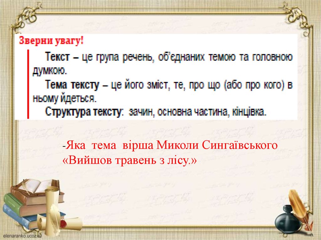 -Яка тема вірша Миколи Сингаївського«Вийшов травень з лісу.»