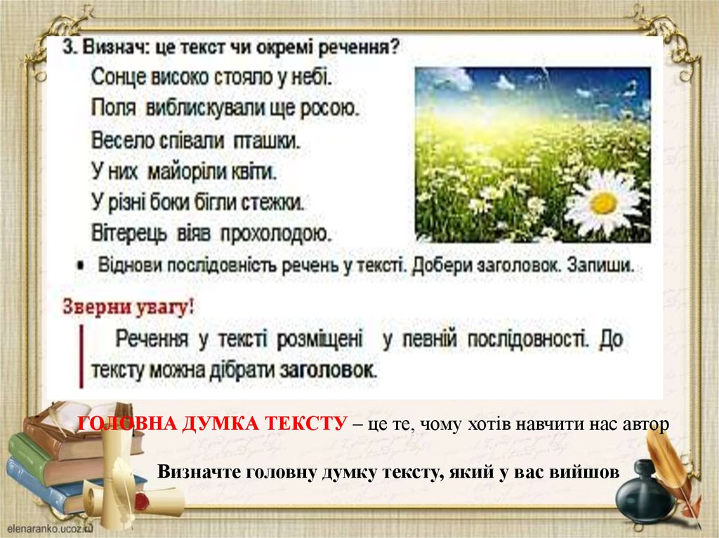 ГОЛОВНА ДУМКА ТЕКСТУ – це те, чому хотів навчити нас авторВизначте головну думку тексту, який у вас вийшов