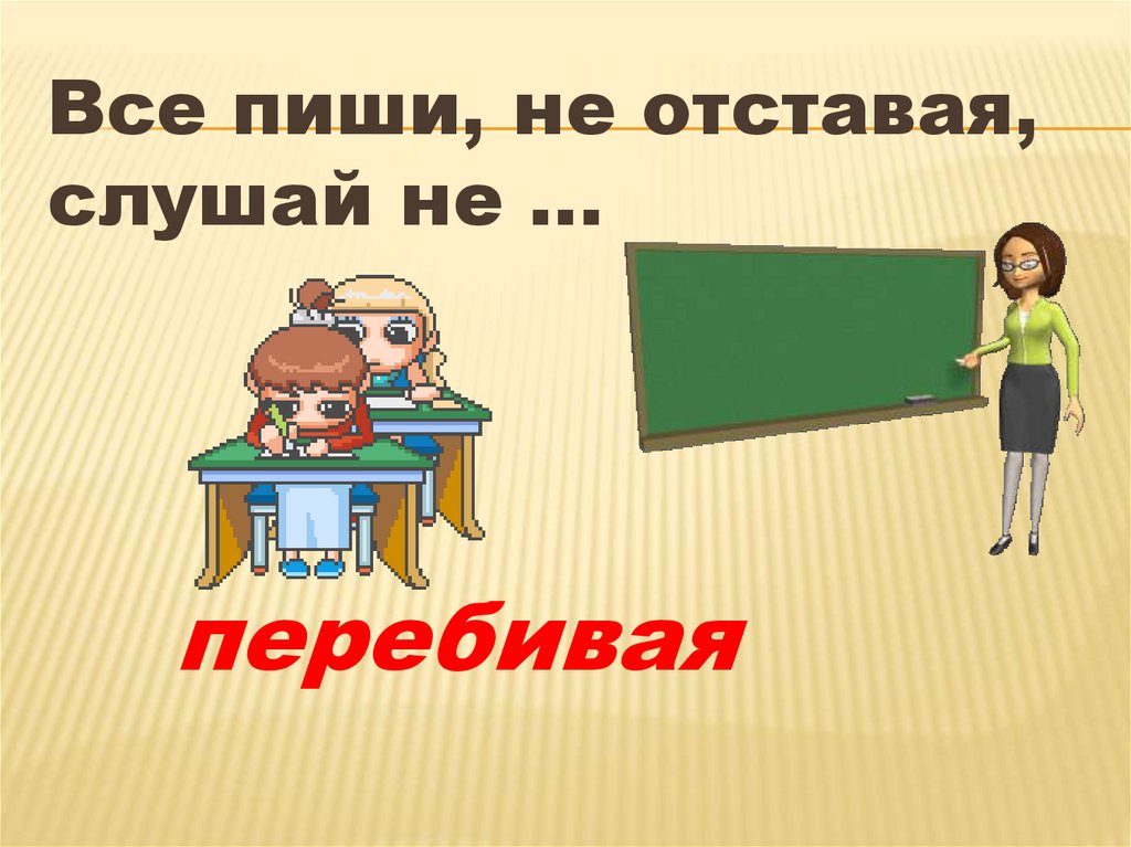 Все пиши, не отставая,слушай не …
