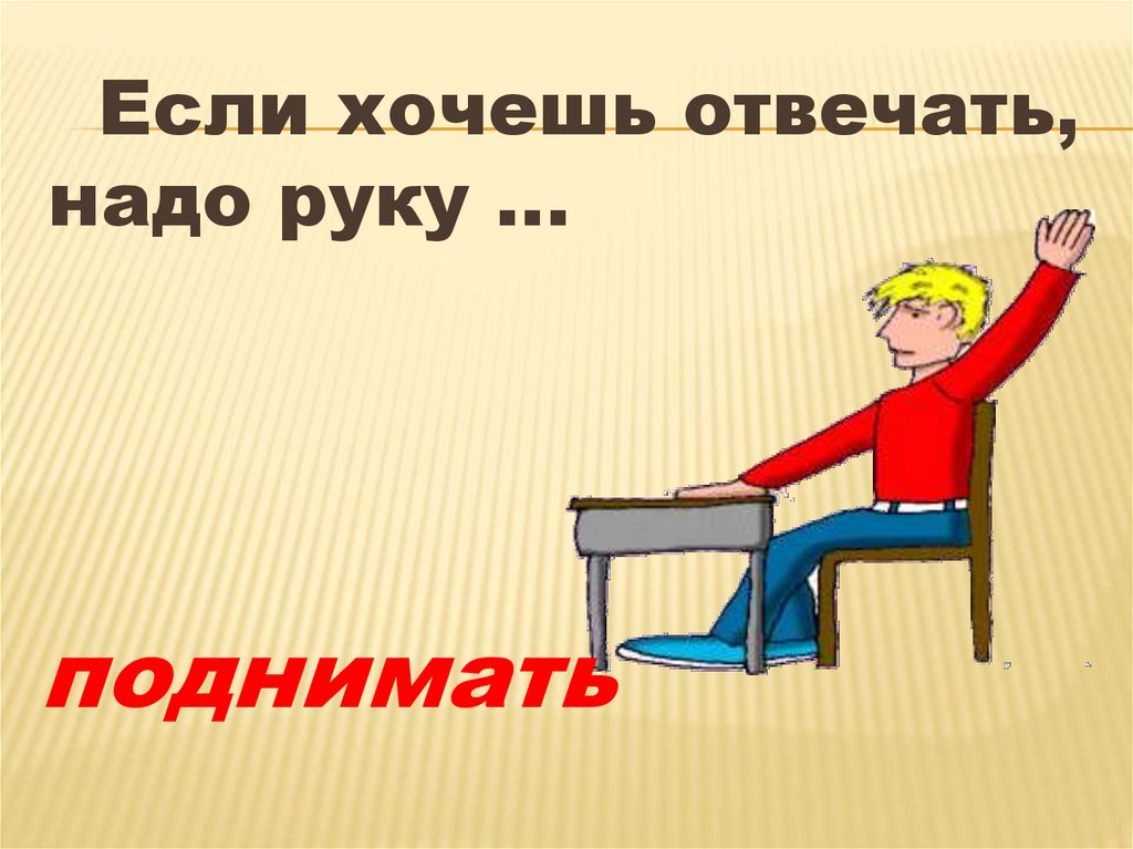 Если хочешь отвечать,надо руку …