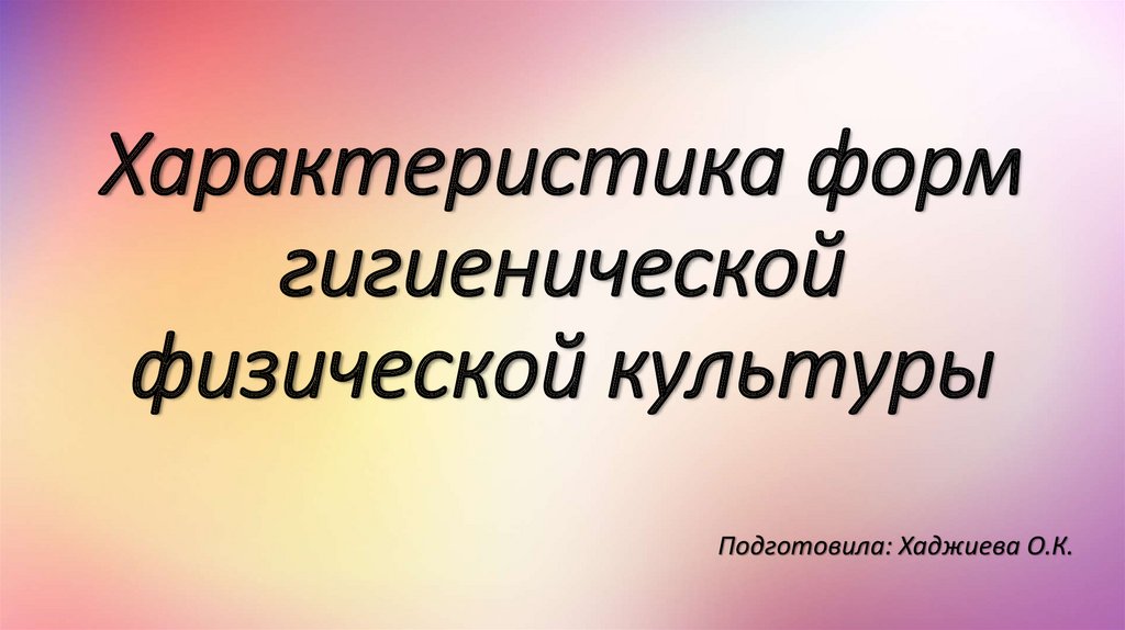 1. Характеристика форм гигиенической физической культуры