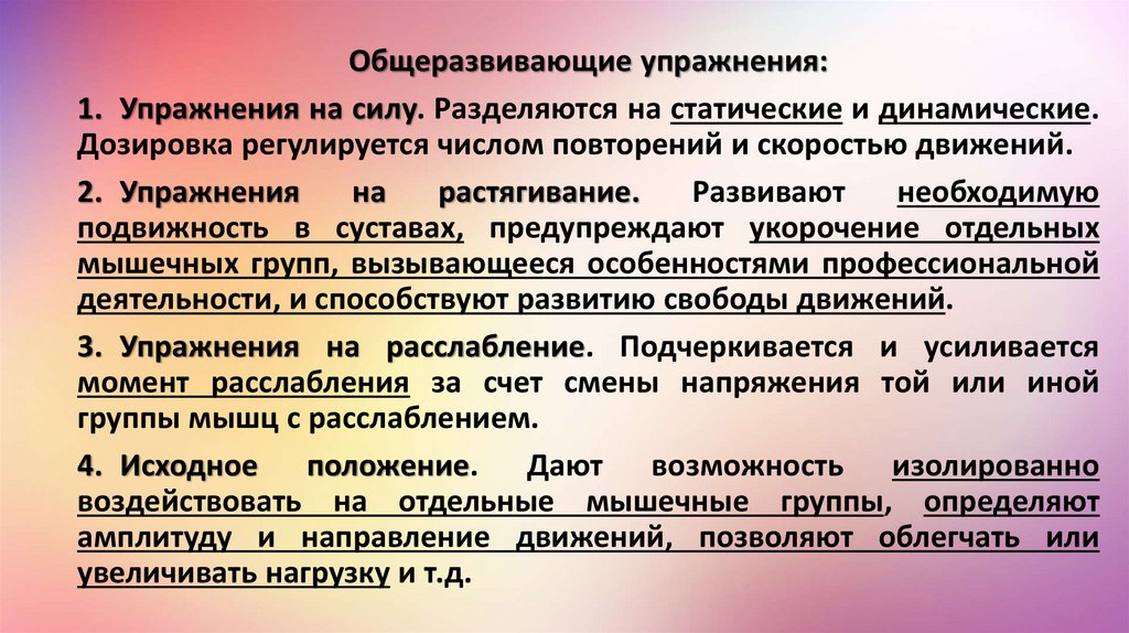 3. Упражнения на расслабление. Подчеркивается и усиливается