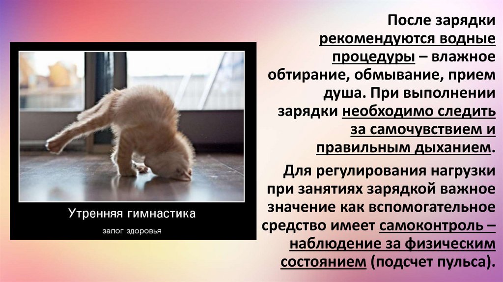 при занятиях зарядкой важное