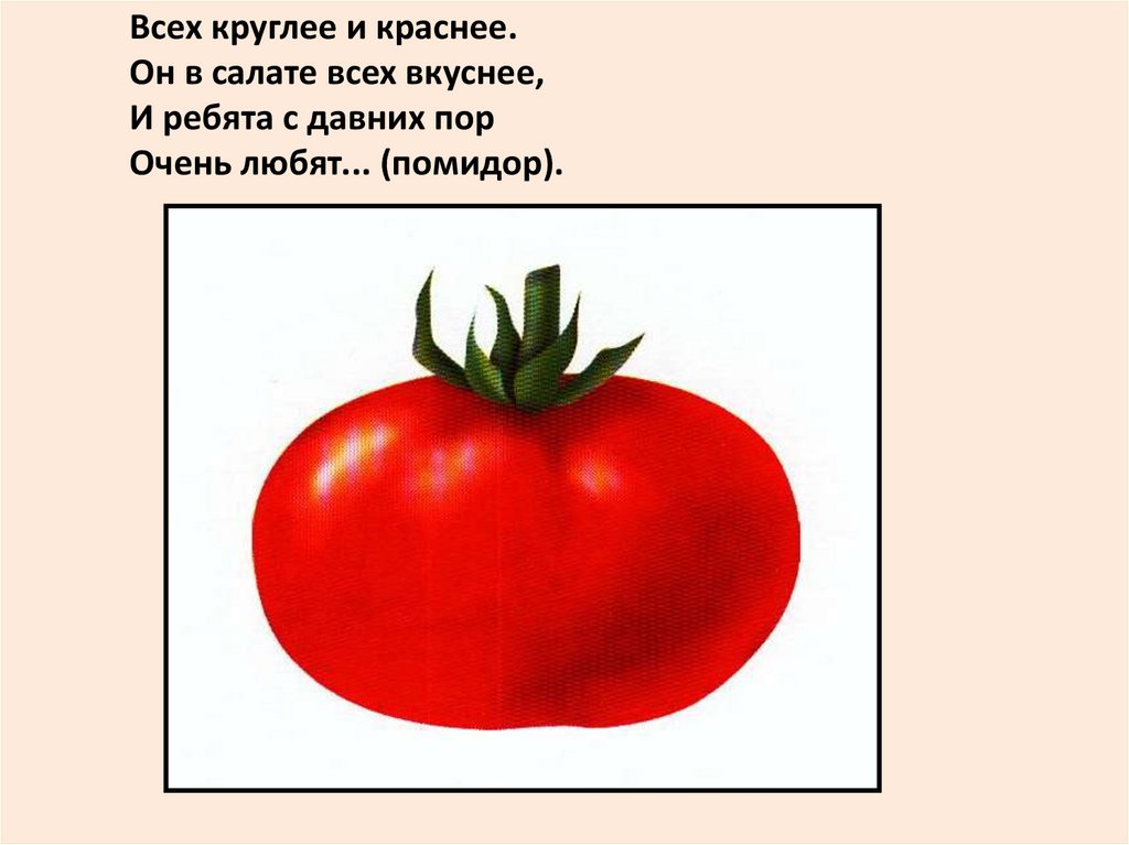 Всех круглее и краснее.Он в салате всех вкуснее,