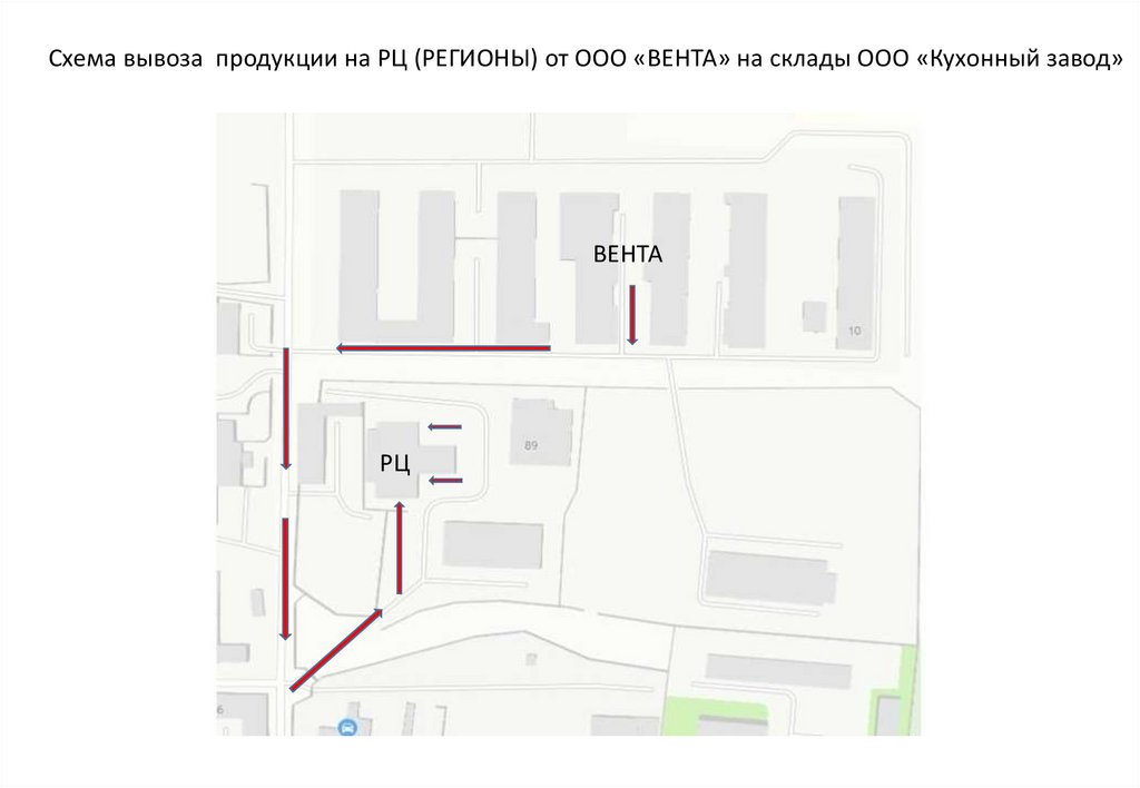 Схема вывоза продукции на РЦ (РЕГИОНЫ) от ООО «ВЕНТА» на склады ООО «Кухонный завод»
