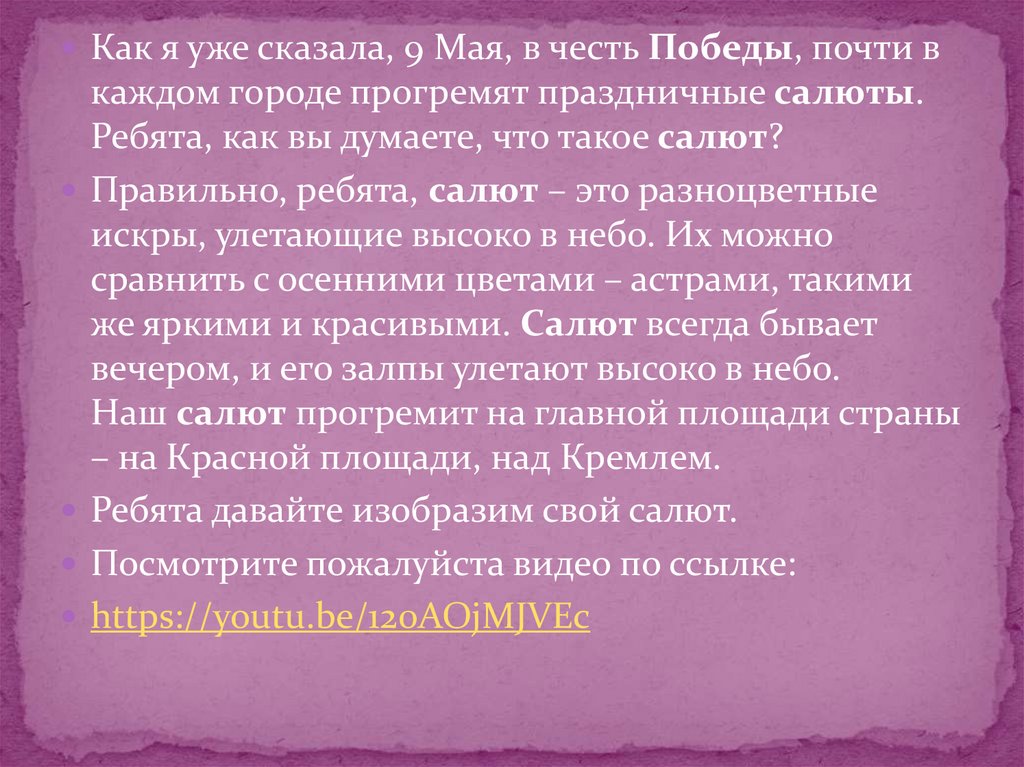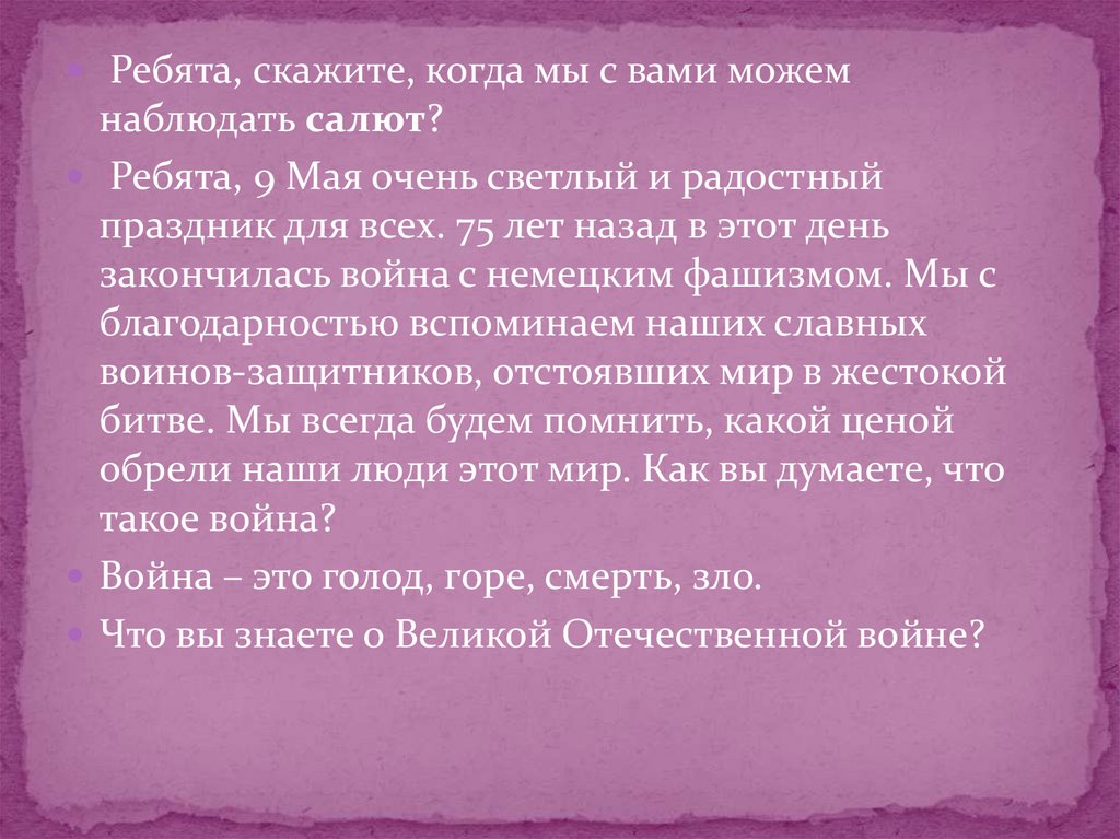 Ребята, скажите, когда мы с вами можемнаблюдать салют?