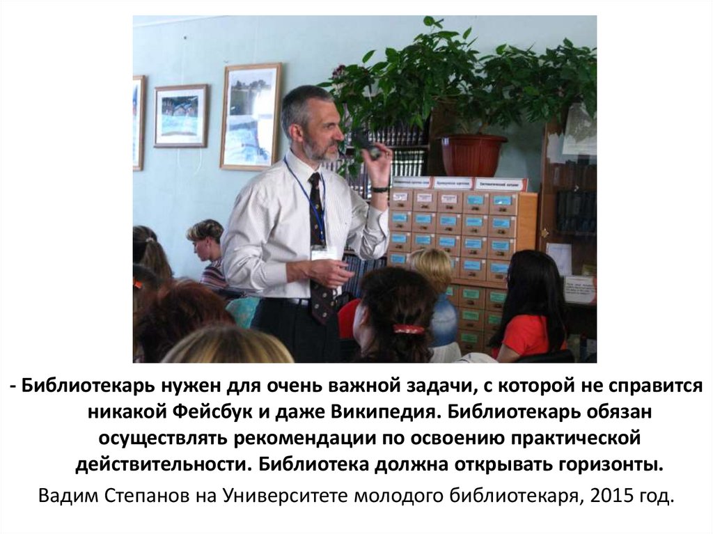 Вадим Степанов на Университете молодого библиотекаря, 2015 год.
