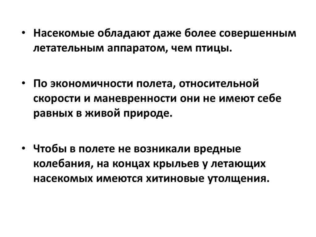 • Насекомые обладают даже более совершеннымлетательным аппаратом, чем птицы.