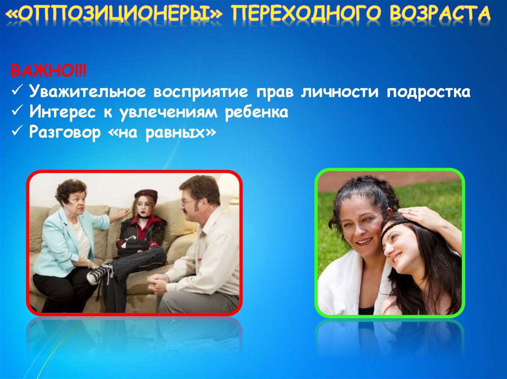 ВАЖНО!!!Уважительное восприятие прав личности подростка