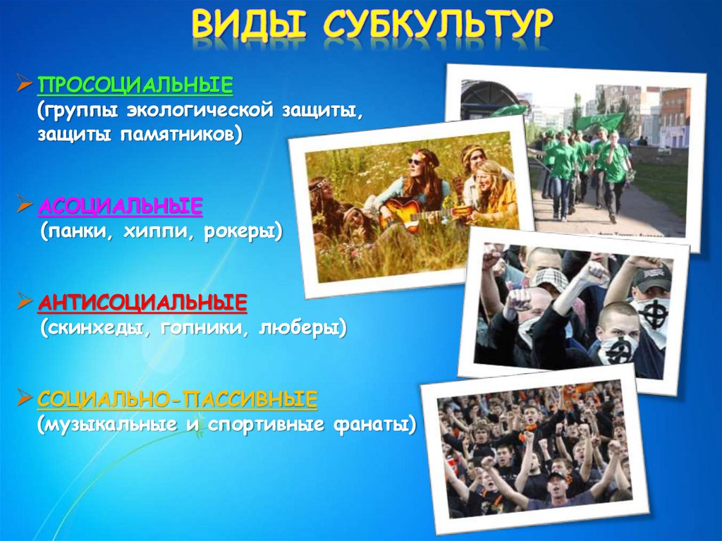 (скинхеды, гопники, люберы)