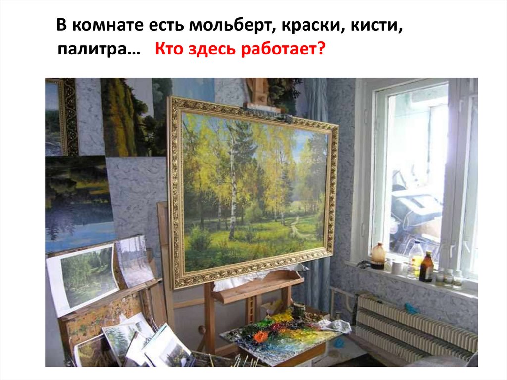 В комнате есть мольберт, краски, кисти,палитра… Кто здесь работает?