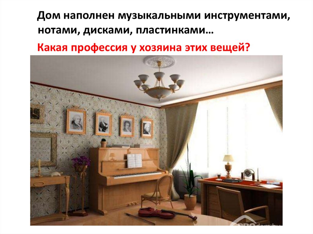 Дом наполнен музыкальными инструментами,нотами, дисками, пластинками…