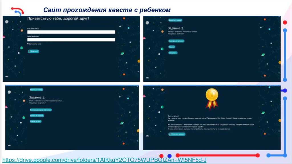 Сайт прохождения квеста с ребенкомhttps://drive.google.com/drive/folders/1AIKkgY2OTO75WUPBGIZAn-jWt5NF5d-J