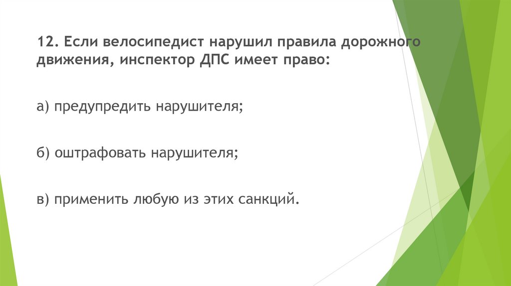 12. Если велосипедист нарушил правила дорожногодвижения, инспектор ДПС имеет право: