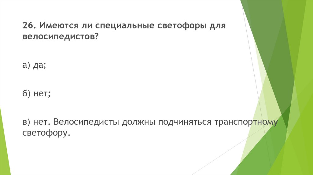 26. Имеются ли специальные светофоры длявелосипедистов?