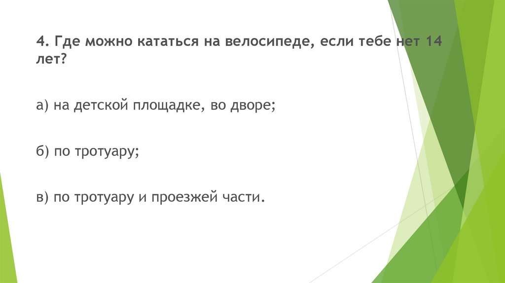 4. Где можно кататься на велосипеде, если тебе нет 14лет?