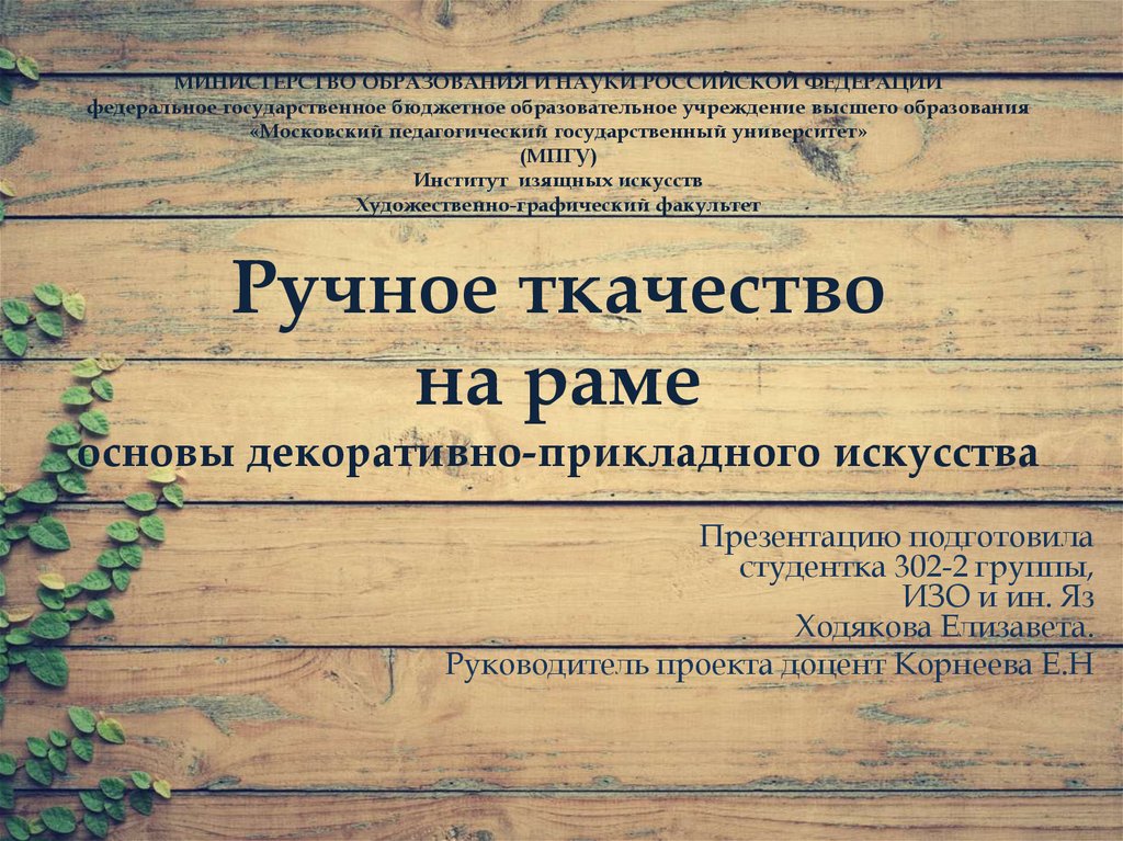 1. \ МИНИСТЕРСТВО ОБРАЗОВАНИЯ И НАУКИ РОССИЙСКОЙ ФЕДЕРАЦИИ федеральное государственное бюджетное образовательное учреждение