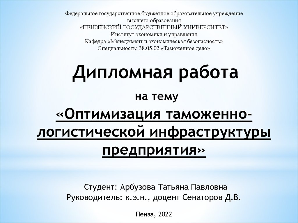 Оптимизация таможеннологистической инфраструктуры предприятия