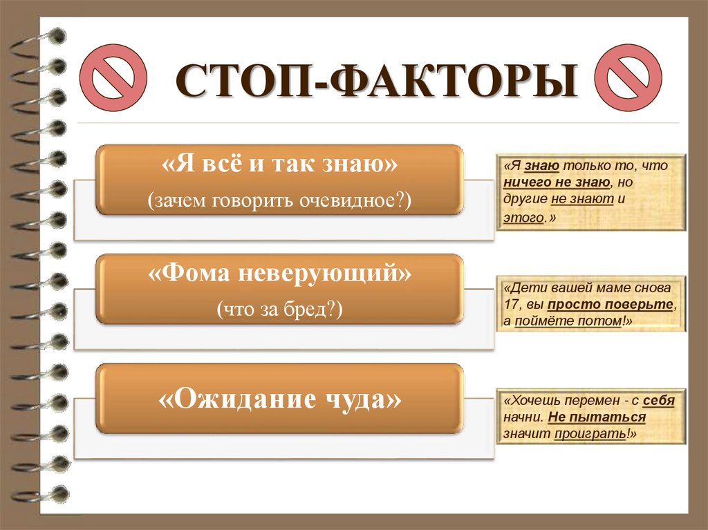 СТОП-ФАКТОРЫ«Я всё и так знаю»