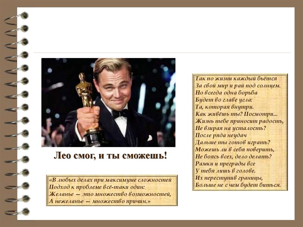 Лео смог, и ты сможешь!«В любых делах при максимуме сложностей