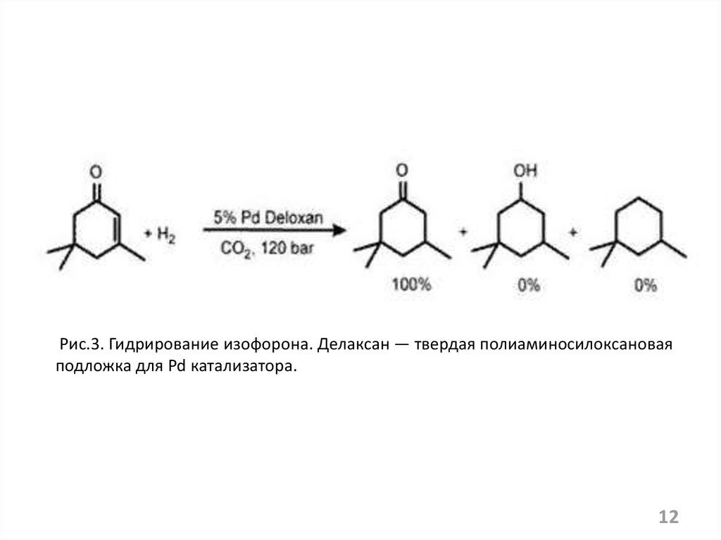 Рис.3. Гидрирование изофорона. Делаксан — твердая полиаминосилоксановаяподложка для Pd катализатора.