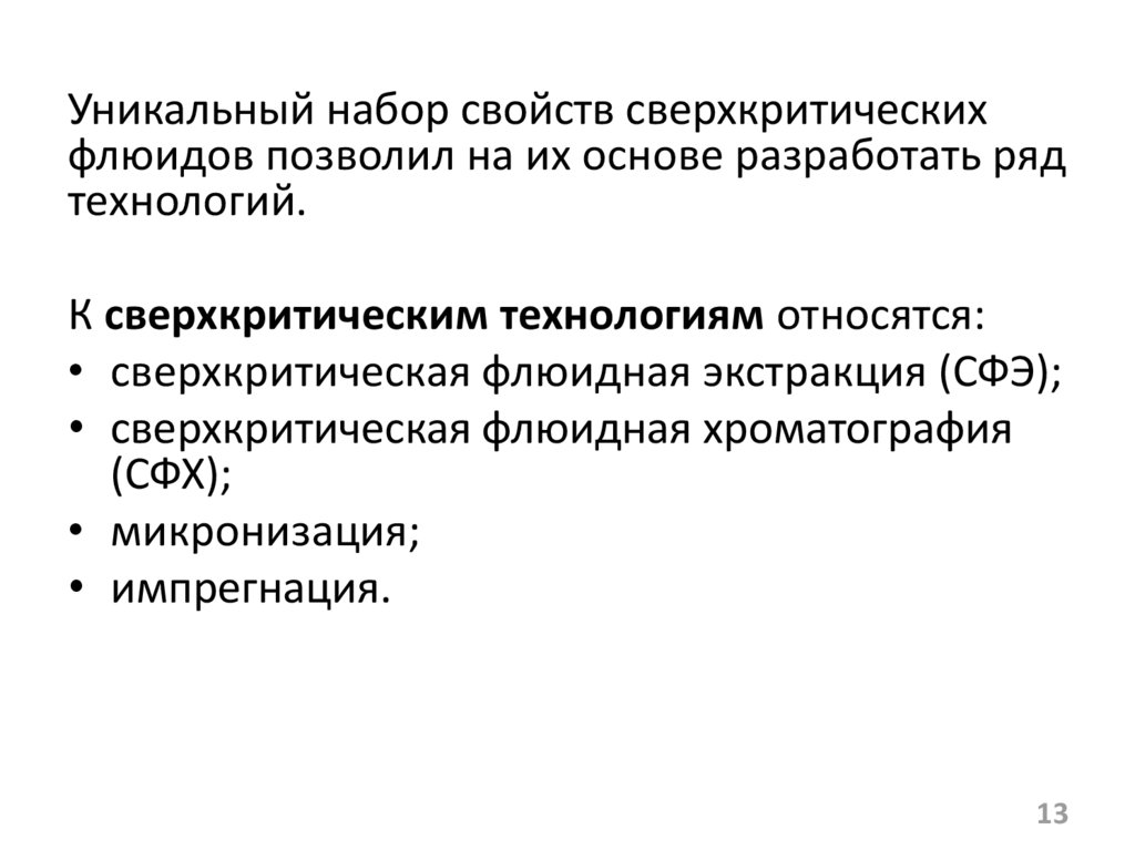 Уникальный набор свойств сверхкритическихфлюидов позволил на их основе разработать ряд