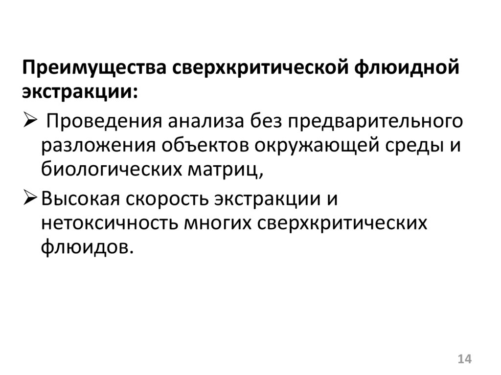 Преимущества сверхкритической флюиднойэкстракции: