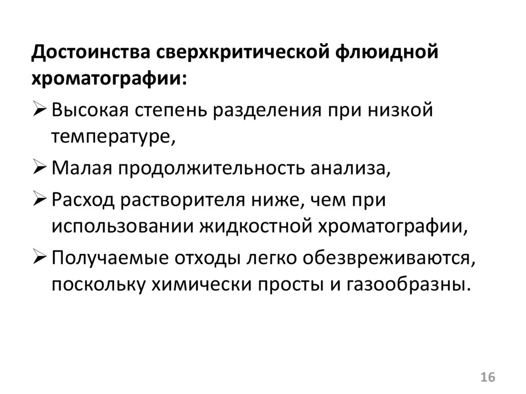 Достоинства сверхкритической флюиднойхроматографии: