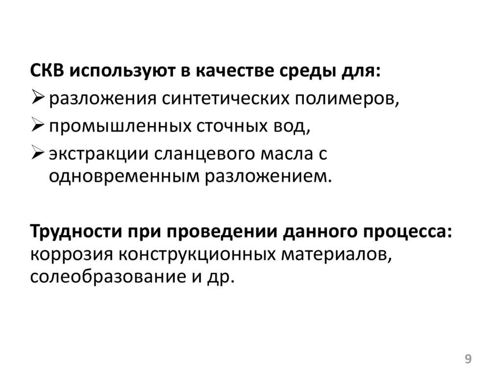 СКВ используют в качестве среды для:разложения синтетических полимеров,