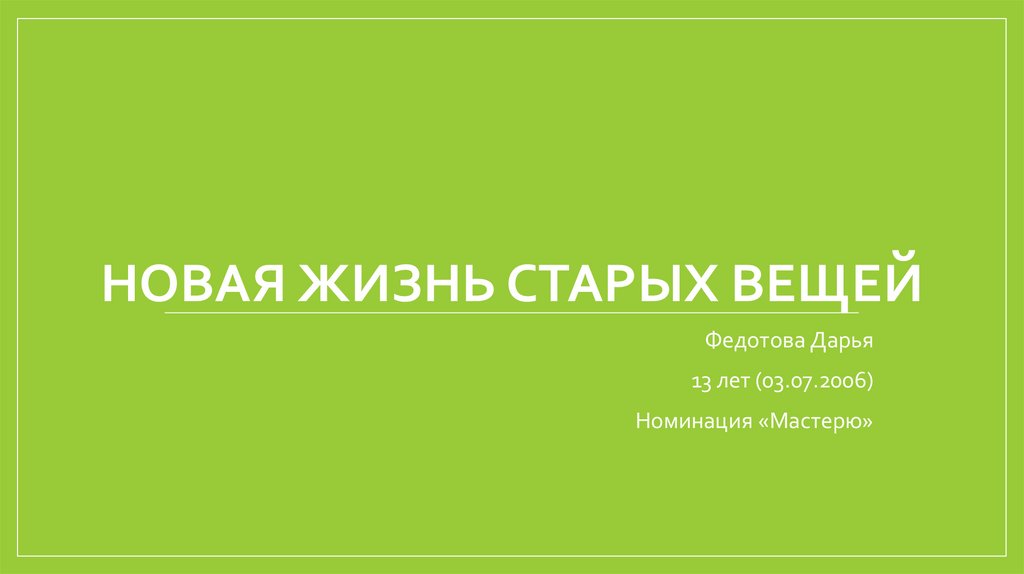 НОВАЯ ЖИЗНЬ СТАРЫХ ВЕЩЕЙФедотова Дарья