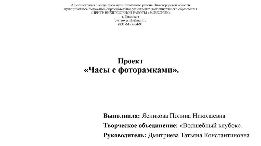 дополнительного образования«ЦЕНТР ВНЕШКОЛЬНОЙ РАБОТЫ «РОВЕСНИК»