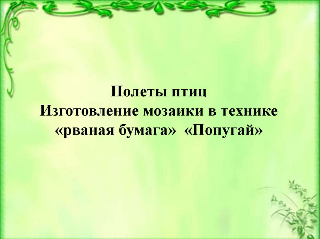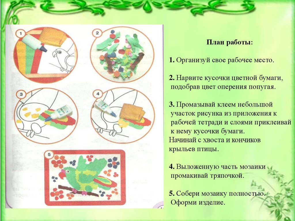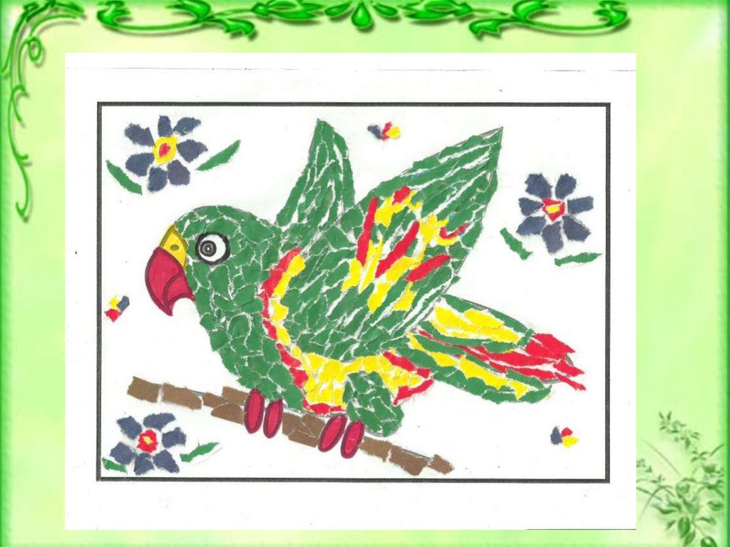 Изготовление мозаики в технике «рваная бумага» «Попугай»