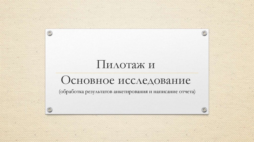 (обработка результатов анкетирования и написание отчета)2. Что такое пилотажное исследование