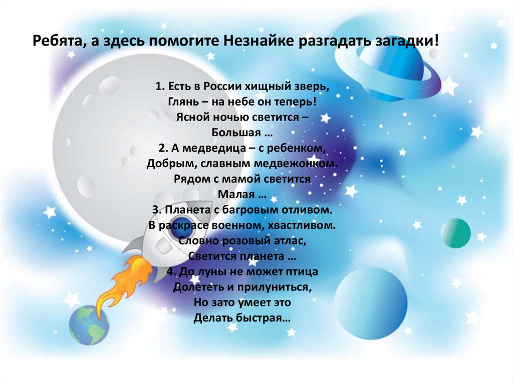 Ребята, чтобы лететьдальше, помогите Незнайке