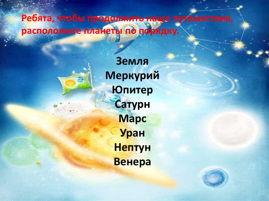 Ребята, чтобы продолжить наше путешествие,расположите планеты по порядку.