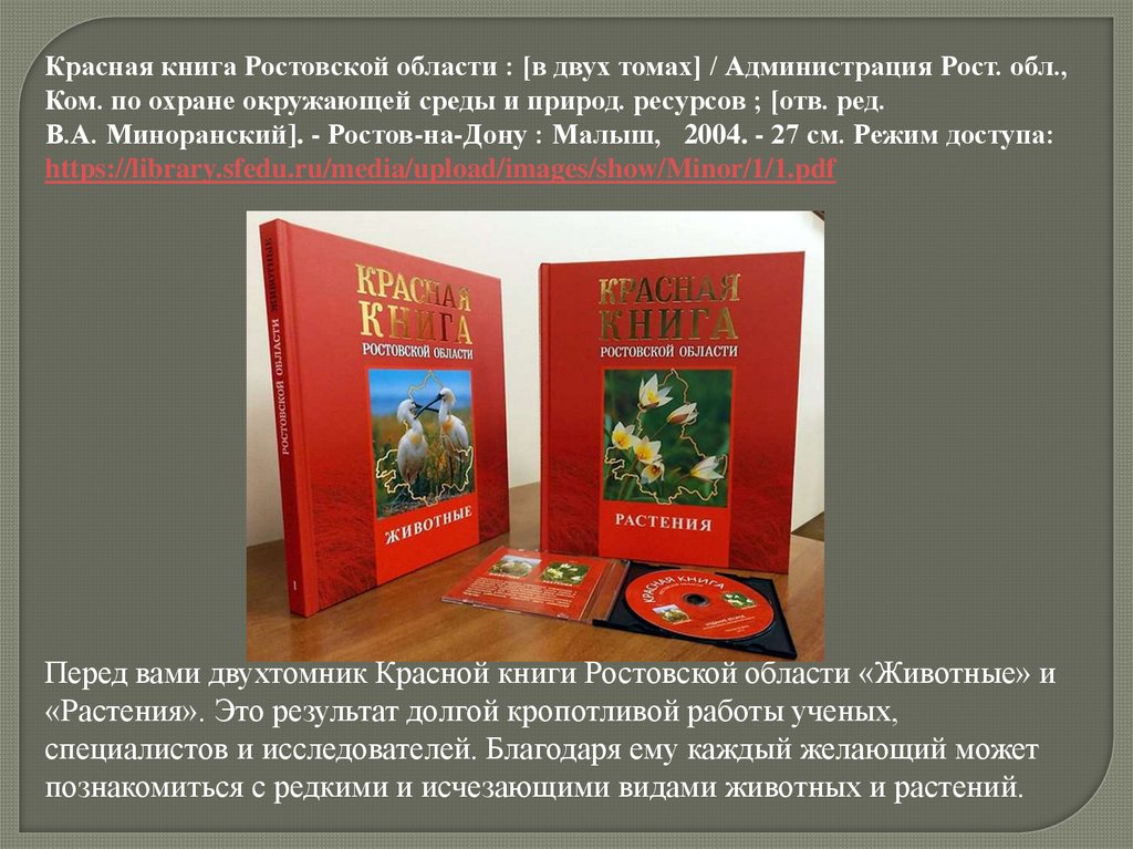 Перед вами двухтомник Красной книги Ростовской области «Животные» и