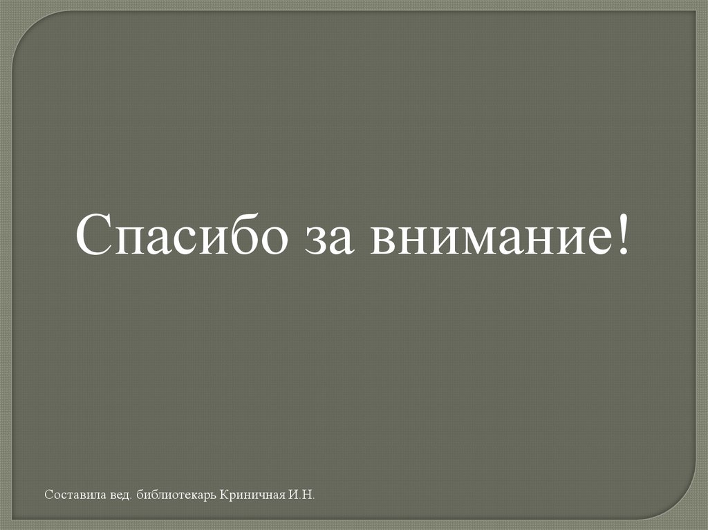 Спасибо за внимание!Составила вед. библиотекарь Криничная И.Н.