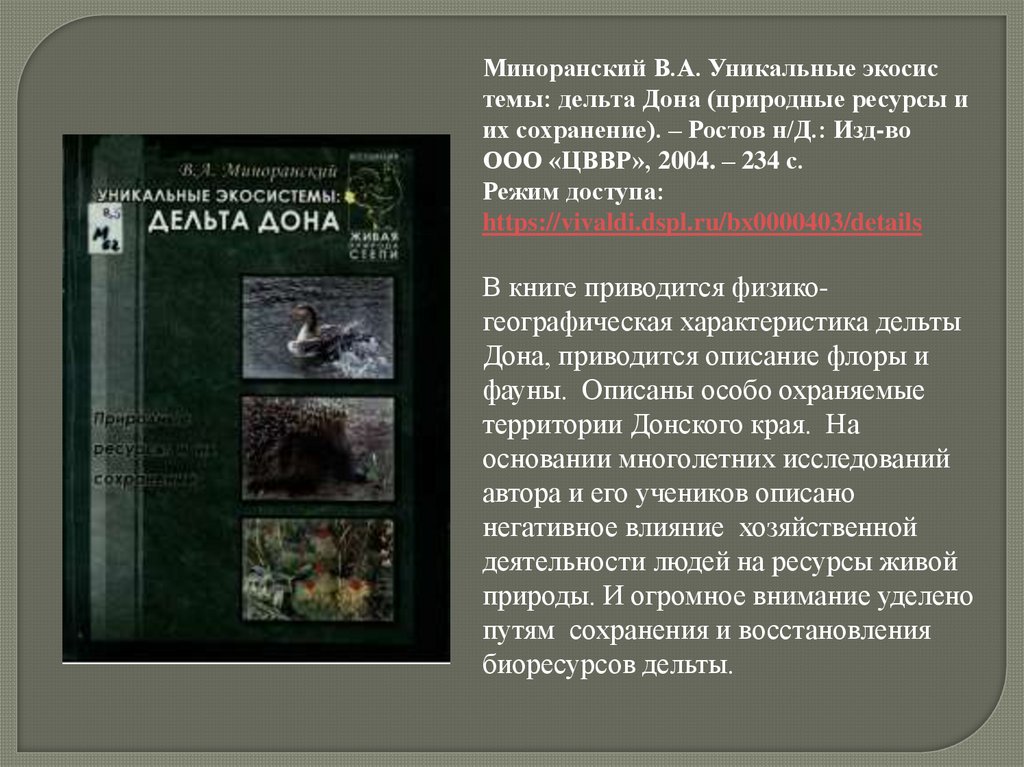 Миноранский В.А. Уникальные экосистемы: дельта Дона (природные ресурсы и