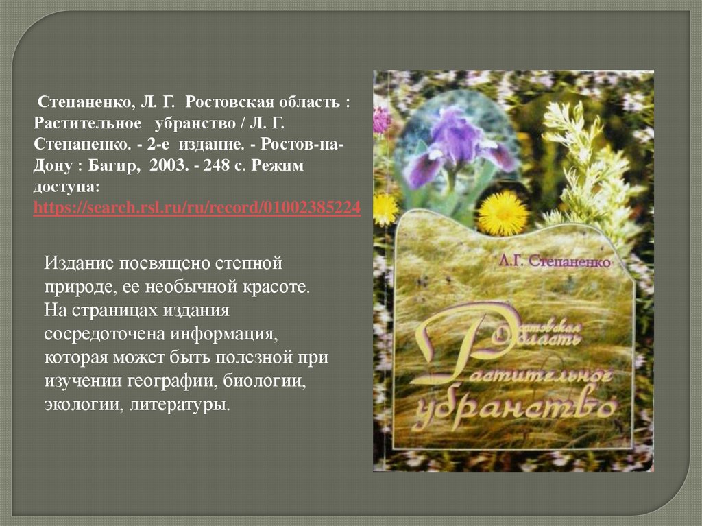 Степаненко, Л. Г. Ростовская область :Растительное убранство / Л. Г.