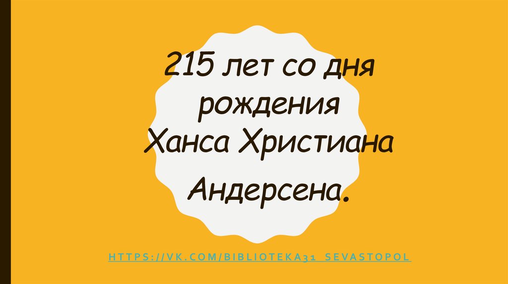 215 лет со дня рождения Ханса Христиана Андерсена