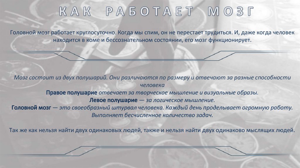 Человеческий мозг — самый сложный объект для изучения. В немкроется много тайн и загадок. От него зависят наши действия,