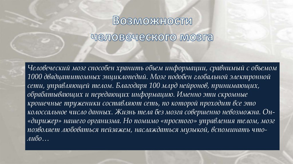 Особенности и возможности человеческого мозга