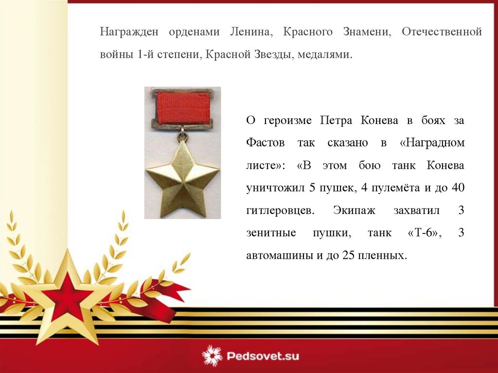 двадцати пленных солдат противника. В бою Конев П. А. был