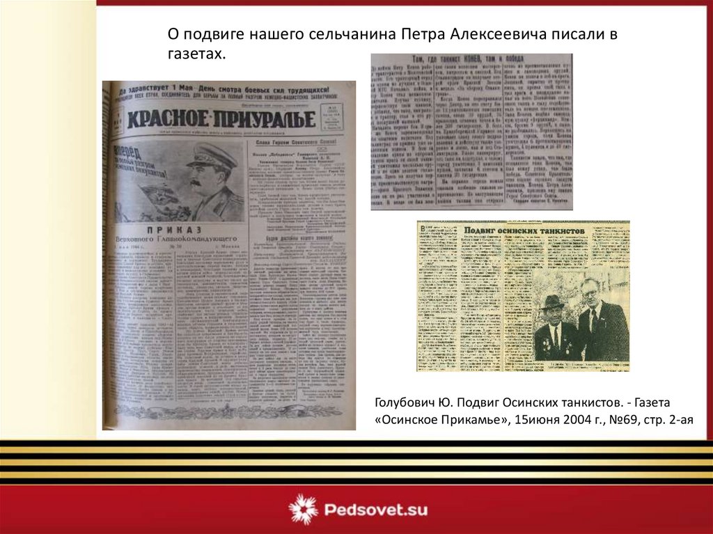 7. Голубович Ю. Подвиг Осинских танкистов. - Газета «Осинское Прикамье», 15июня 2004 г.,