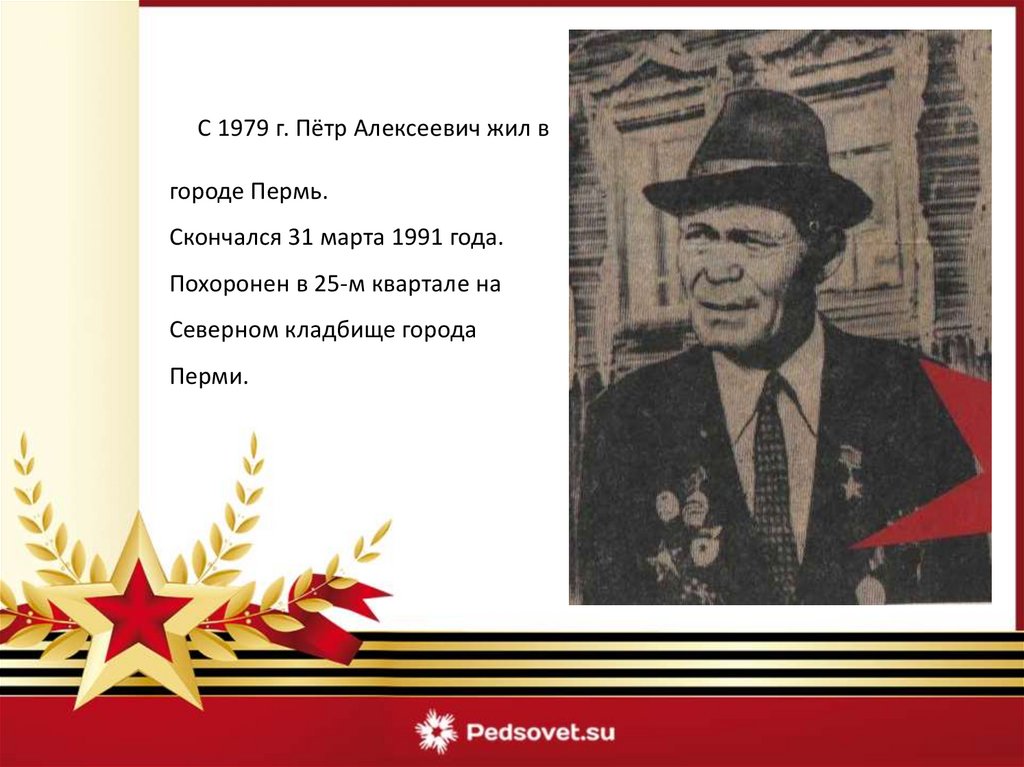 С 1979 г. Пётр Алексеевич жил вгороде Пермь.