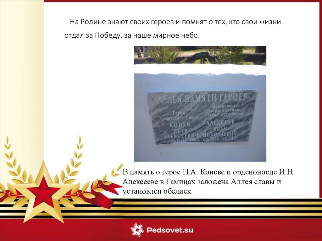 На Родине знают своих героев и помнят о тех, кто свои жизниотдал за Победу, за наше мирное небо.
