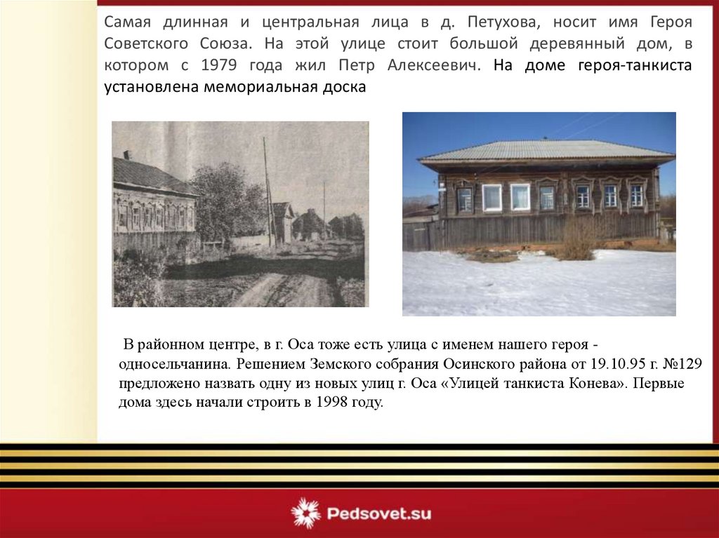предложено назвать одну из новых улиц г. Оса «Улицей танкиста Конева». Первые