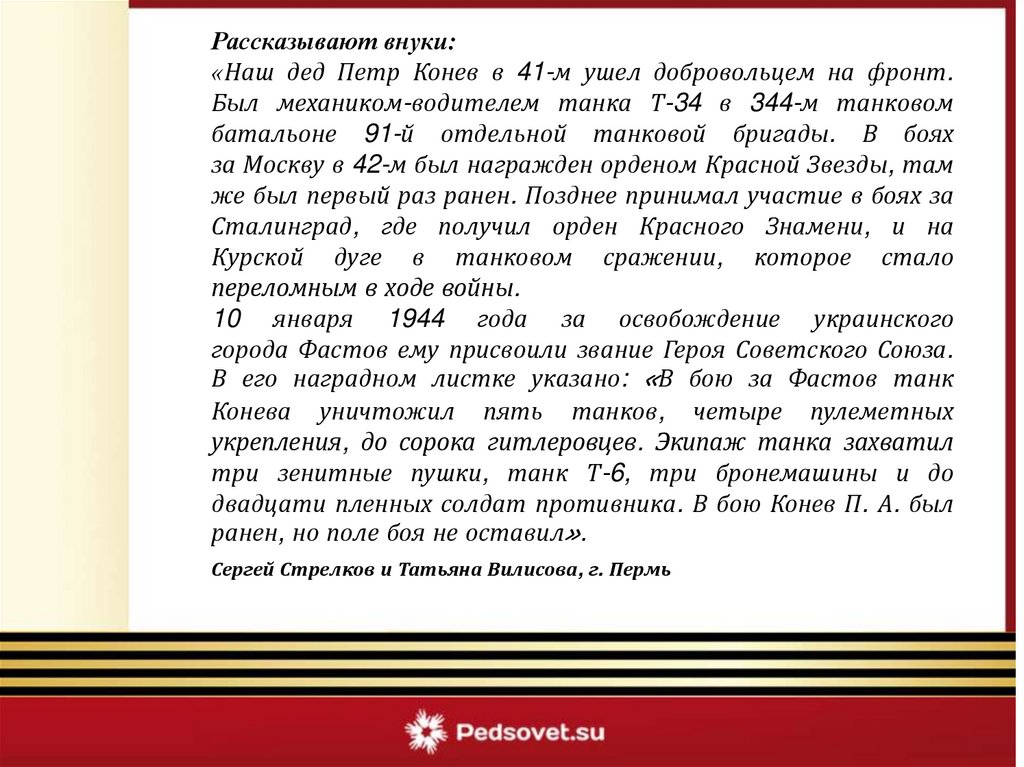 Рассказывают внуки:«Наш дед Петр Конев в 41-м ушел добровольцем на фронт.