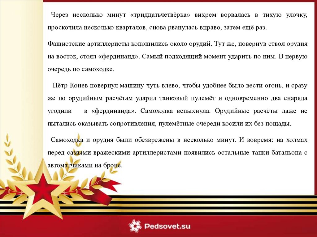 укрепления, до сорока гитлеровцев. Экипаж танка захватил
