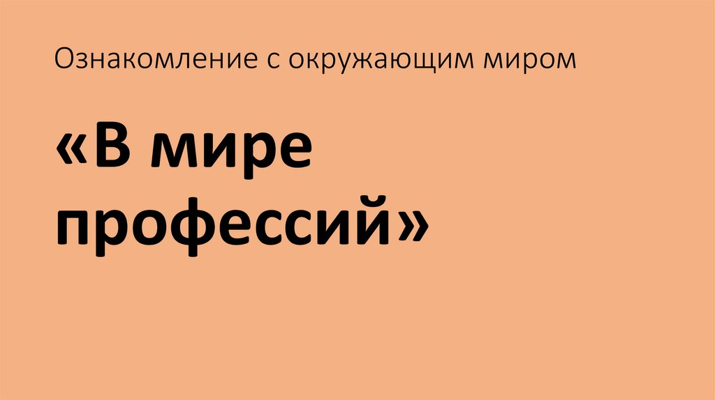 Профессии. Окружающий мир